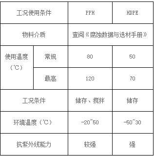 整體纏繞成型的塑料儲罐,現(xiàn)我公司常用的為兩種材質(zhì):PPH(β晶型聚丙烯)、HDPE(高密度聚乙烯),兩種材質(zhì)在實際使用過程根據(jù)物料介質(zhì)、使用溫度、工況、環(huán)境等情況不同來選型。